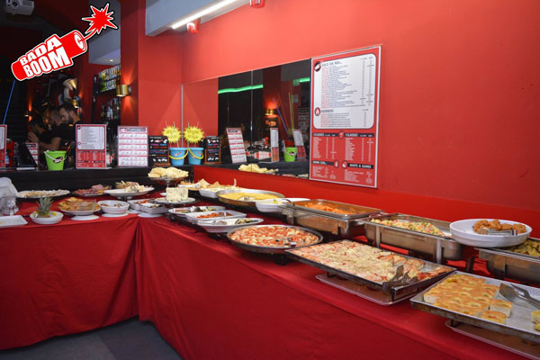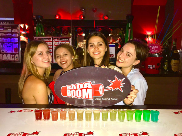 Al Badaboom potrete gustare inoltre la pizza, fino a tarda notte, e godere dello spettacolo degli Show Barmen!