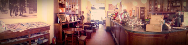Il Caffè sorge su quello che era uno storico passaggio di Milano – demolito il 6 marzo del 1900 per favorire la viabilità con i nuovi quartieri dei Navigli – tra la via San Simone (l’attuale via Cesare Correnti), la via San Vincenzo e Corso Genova. Proprio su questo passaggio sorgeva la Pusterla dei Fabbri, dal nome dall’antico quartiere dimora di fabbri, battitori d’oro e d’altri metalli della città di Milano.