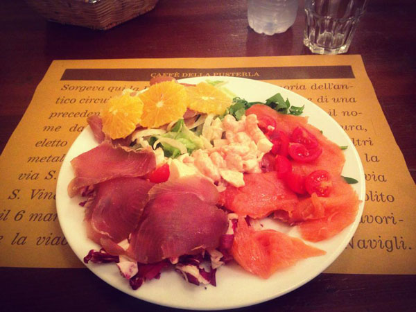 Il Caffè di via De Amicis è il posto adatto per una sosta in qualsiasi momento della giornata, poiché la cucina è aperta sin dalle prime ore del mattino, a partire dalle 7.30 e fino all’1 di notte. L’offerta è molto varia, in quanto potrete trovare dalle pizzette o focaccine ai primi piatti, dai panini o tramezzini ai taglieri con salumi di qualità. Tra le specialità della casa si segnalano inoltre i particolari “crostoni”, le insalatone, le zuppe e i carpacci. Il Caffè della Pusterla dispone inoltre di un’attrezzata cantina di qualità, con vastissima scelta di vini.