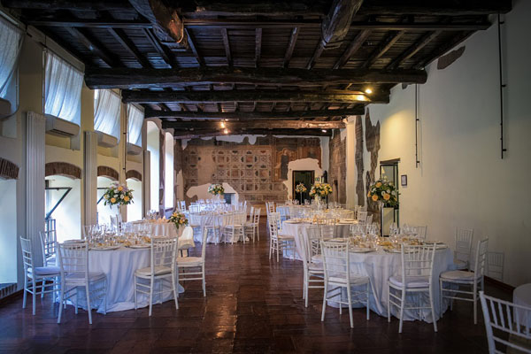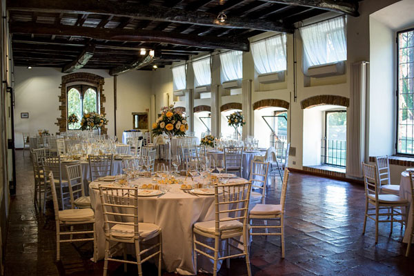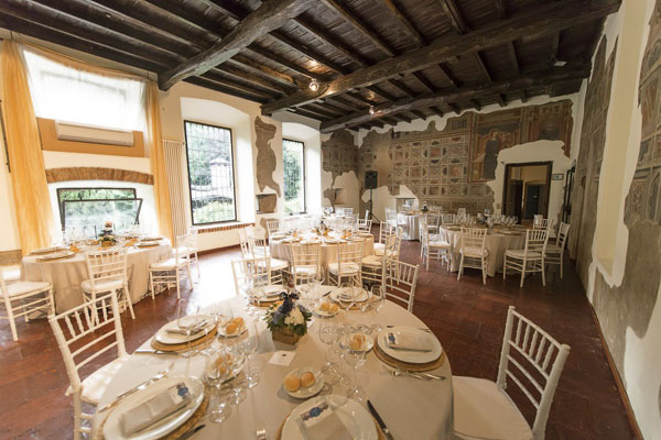 Il castello è composto da varie sale interne, con arredi d’epoca, affreschi e pareti in pietra. I saloni al primo piano, tra cui il salone degli affreschi e altre sale comunicanti, possono ospitare oltre 300 persone, mentre il piano terra è composto da quattro ambienti con camini funzionanti, ideali per ricreare un atmosfera antica e per gli eventi invernali. Il castello dispone anche di un’importante spazio esterno con immensi alberi, che dona una particolare atmosfera a quest’intima e romantica Location.