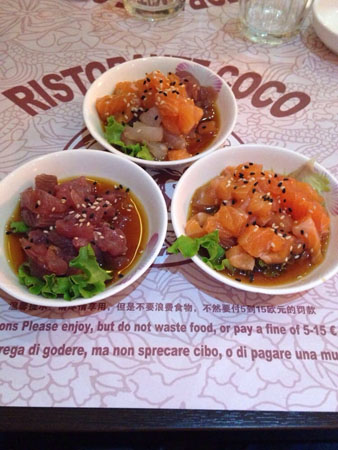 In un tripudio di tinte oro e nero, e un’atmosfera ideale per famiglie, gruppi di amici, e anche coppie alla ricerca di uno spazio tutto per loro di stampo romantico (per il quale il taglio “fusion” non guasta certo), al Coco Japanese dall’antipasto al dessert la scelta è perfino… ardua.