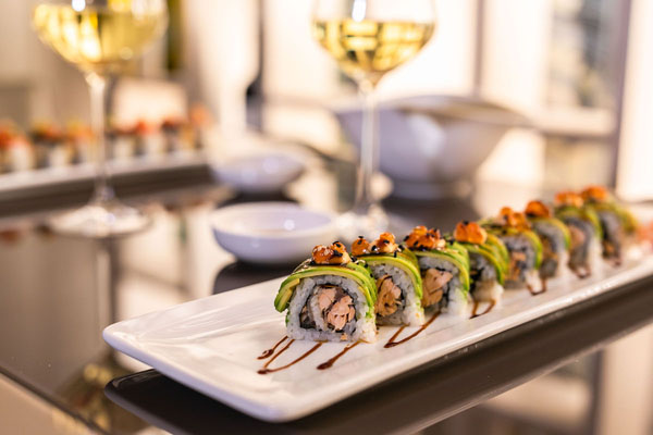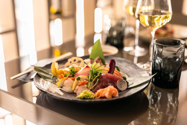Il ristorante, aperto sia a pranzo che a cena, propone a mezzogiorno numerosi menù guidati, tra cui menù a base di pietanze dietetiche, menù a base di pietanze alla griglia, menù tempura e così via. Numerose proposte anche per la cena dove il sushi, quello vero, la fa da padrone.