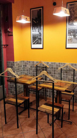 L’ambiente è semplice: un arredamento spartano, un menù fatto di cartone, cozze che vengono servite in vecchie pirofile, mentre sui tavoli vi è un cestino di rifiuti per gettare i gusci..insomma un servizio un po’ informale, ma davvero accogliente e originale. Poi, le ricette con le cozze sono più di venti, e il “cozzaro” sa preparare con vera maestria i suoi piatti.