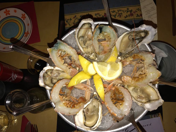 La Cozzeria apre dall’ora dell’aperitivo stuzzicando l’appetito dei clienti con ostriche e Pastis, poi si passa agli antipasti, con i gamberi , i calamari per arrivare al piatto principale a base di cozze.