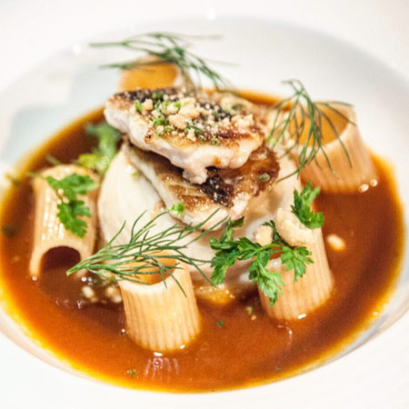 Dulcis in fundo un semifreddo all’ananas e crema di mango, una crema al pompelmo con meringa italiana al lampone, una “mattonella” preparata con biscotto al cacao mousse di banana e spuma al pistacchio … Tutto da accompagnare con l’accurata selezione di vini della cantina di casa, che propone i migliori prodotti della case vinicole italiane, oltre a champagne e vini francesi.