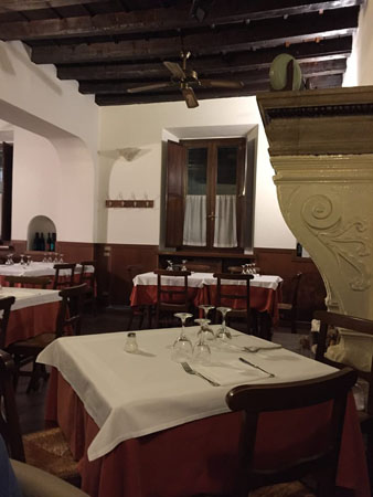 Dopo un ingresso molto semplice, si trova la sala principale del ristorante L’Altra Isola, che dispone di un grande camino e presenta un arredamento volutamente rustico.