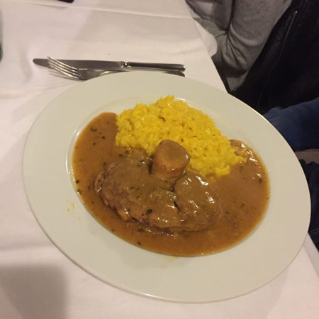 Tra i piatti in menù troverete mondeghili (polpettine di carne) e nervitt con fagioli, risotti, ossobuco, cotoletta alla milanese, trippa…