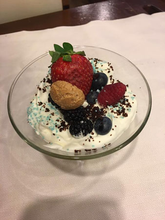 La cucina di casa, come detto, propone i migliori piatti della cucina regionale sarda, con gli chef sempre pronti a deliziare con le loro specialità rigorosamente preparate con ingredienti freschissimi e di gran qualità. Ed ecco che in menù vi sono antipasti di mare e di terra, primi piatti, tagliate di carne e di pesce, secondi di carne e di pesce, contorni … e carpacci e insalate. Tra le specialità si segnala il tipico “Maialino Sardo”, assolutamente da provare.