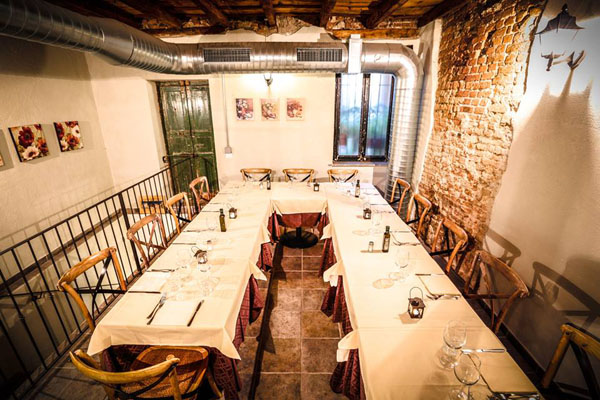 Tre sale interne distinte, circa 150 posti a sedere ed un ambiente che ricorda lo stile delle vecchie locande milanese. Rustico ed elegante, uno spazio ideala per diverse tipologie di incontri o appuntamenti. Le sale de L’Osteria di Brera a Milano sono infatti dominate da archi e travi a vista, ed impreziosite da mattoncini a vista sulle pareti e mobili e mensole stracolme delle migliori etichette di vini italiani e internazionali. Per la bella stagione l’osteria di Via Fiori Chiari dispone anche di posti a sedere in esterno (30 coperti circa), per fermarsi a cenare nella suggestiva atmosfera di Brera.