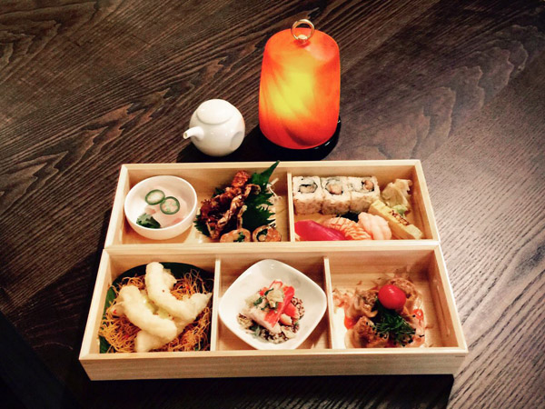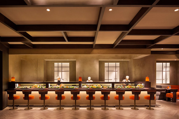 Nell’ampio spazio riservato al lounge bar è possibile rilassarsi sorseggiando saporiti cocktail accompagnati da una selezione di tempura, sushi e kuskiyaki, in questa zona inoltre si può anche optare per un pasto più sostanzioso scegliendo tra quattro diversi Lounge Bento Box(due a base di pesce, uno di carne, uno vegetale). Al primo piano invece si trova il ristorante, varcata questa soglia si viene trasportati in un’altra dimensione culinaria, infatti la possibilità di assaporare tutte le proposte del famoso chef nipponico è riservata ai soli clienti del ristorante.