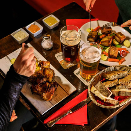 Disponibile per il pranzo, aperitivo e cena, Old Fox Pub è ideale per una pausa in tutti i momenti della giornata. Il menù propone antipasti quali ‘Aringa marinata in olio extra vergine d’oliva e cipolle’, ‘Selezione di salumi misti con capperi di Pantelleria’, Assortimento di formaggi servito con miele e mostarde dedicate’ … e ancora piatti unici come ‘Roastbeef all’inglese e patate al prezzemolo’, ‘Goulash e patate al prezzemolo’, ‘Tagliata di manzo’, ‘Hamburger con patatine fritte’ … e ancora diverse tipologie di panini e dessert a scelta.