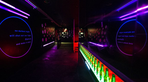 All’interno del locale il bianco la fa da padrone, e a creare l’atmosfera ci pensa l’illuminazione con mille luci psichedeliche e divanetti spari qua e là per la location. Va detto che il Q21 può essere anche utilizzata come location per eventi, ed in quei casi vi è la possibilità di allestire catering e di ospitare fino a ben 600 persone.