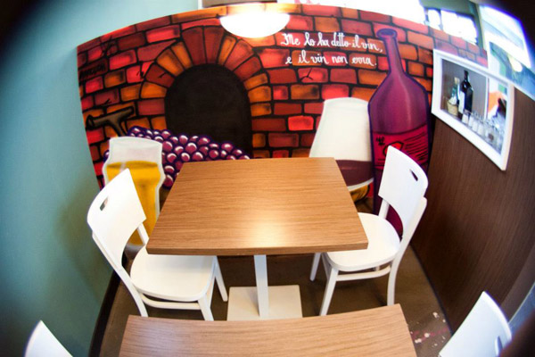 Il dehor esterno sopra citato si trova appena prima dell’ingresso del Quanto Basta, ed è arredato con tavoli e ombrelloni! Gli interni della location stupiscono per luminosità e colore, con stravaganti graffiti, murales e citazioni tutte da scoprire come decoro per le pareti. Come accennato, il QB di Milano è uno spazio eclettico, caratteristica che viene fuori anche dallo stile degli spazi ricavati all’interno delle sale, come l’angolo limoni (con una pianta di limoni e un comodo divano) o l’angolo ristorante, intimo e riservato, ed arredato con sedie l’una diversa dall’altra, modo originale per rompere rispetto ai soliti schemi.