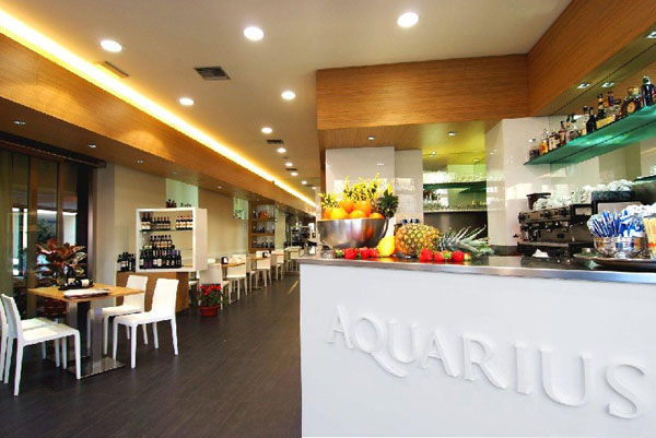 Un ambiente elegante, confortevole e di classe, suddiviso in tre sale che possono ospitare circa 70 coperti. Al ristorante Aquarius il cliente potrà scegliere di cenare nelle comode sale non fumatori oppure di cavalcare l’onda dell’esclusiva sala fumatori, denominata “transatlantico”. La location dispone inoltre di un pregevole dehor, completamente climatizzato, e le sale interne sono dotate di privee, adatti per incontri privati o di lavoro.