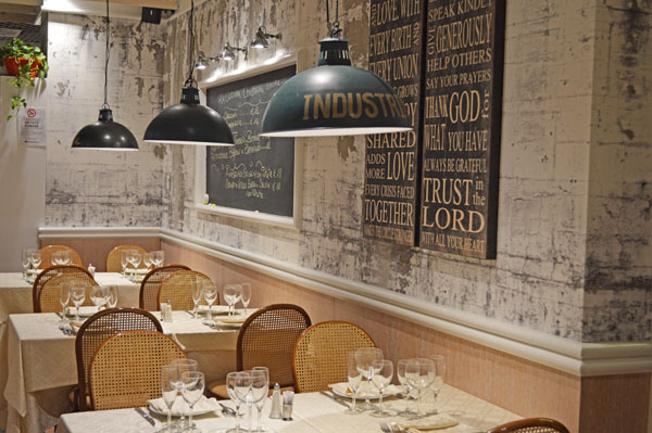 Sala unica e colori chiari a comporre questa location di lusso, arredata in modo elegante e con una disponibilità di coperti pari ad 80 posti a sedere. In poche parole un ambiente ideale per assaporare tutti i gusti della migliore cucina italiana tradizionale. Sulle pareti i mattoni compongono un piacevole mosaico, e piante ed elementi d’arredo completano l’opera in sala!