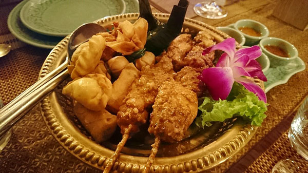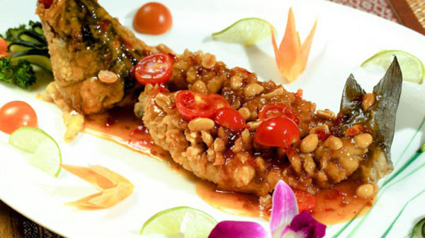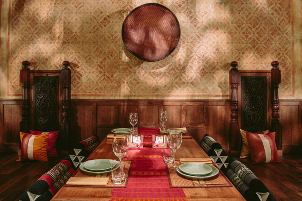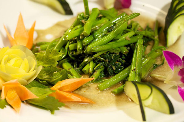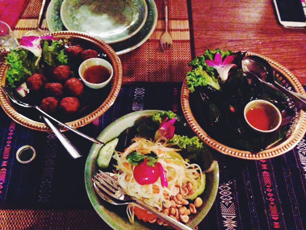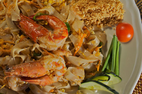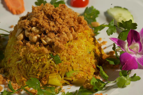 La cucina è rigorosamente tailandese: polpette di pesce, spiedini di carne alla salsa di arachidi, insalata di spaghetti di soia, pollo al curry verde, pesce alla griglia in foglia di banana, tagliatelle di riso con uovo, gamberi, pollo e salsa di pece.