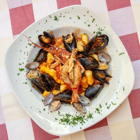Si può aprire con un Lardo di Colonnata, con la Bresaola della Valtellina, col Culatello di zibello con mozzarella di Bufala, ma per gli amanti del pescato fresco c’è l’Apoteosi di mare, che solo dal nome evoca prelibatezze per il palato, senza dimenticare il misto di cruditè.