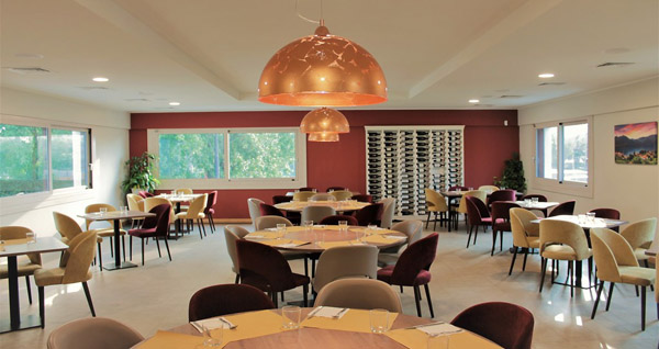 Una zona ampia e confortevole quella del ristorante, dominata da uno spettacolare camino centrale e costruita attorno al patio; sono disponibili ben 100 coperti in uno spazio accogliente e ben arredato. Lo spazio è suddiviso tra zona bar, zona living, zone gioco (con zona fumatori separata), zona tv e sala pianoforte.